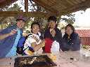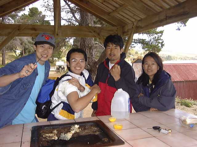 We wanted to eat cooked oysters too, but there was no place for cooking. So I went to search for a place, and I could only find one in Dennes Point. Then I went back and went to Dennes Point with friends again. On the way we saw ... sorry, I don't know the name of the animal. Cooked oysters taste good.
